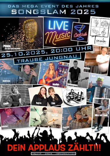 Ein Abend voller Musik, Emotionen und Augenzwinkern: Denn beim SongSlam geht es nicht nur ums Musizieren, sondern auch um den charmanten Wettstreit um den heiß begehrten Wanderpokal. Wer wird ihn dieses Jahr mit nach Hause nehmen?