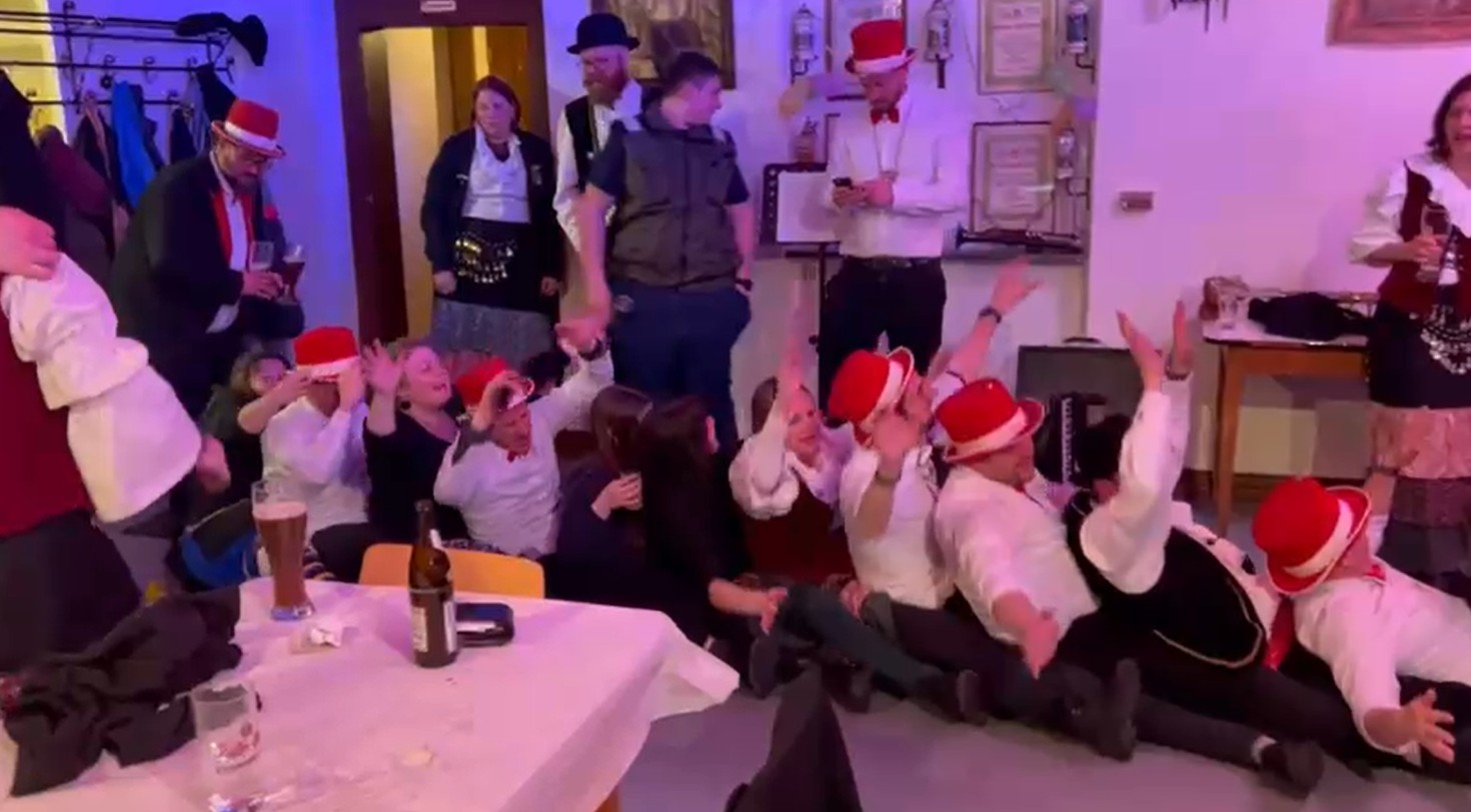 Seit vielen Jahrzehnten ist es guter Brauch, nach dem Bräuteln den "Kehraus" in der Traube zu feiern. Für Stimmung sorgt im kommenden Jahr hoffentlich wieder Alleinunterhalter Manne Kraus (oder auch Paul - wir wissen es noch nicht) und vielleicht wieder eine alte oder gar aktuelle Büttenrede. In diesem Jahr war es K L A S S E